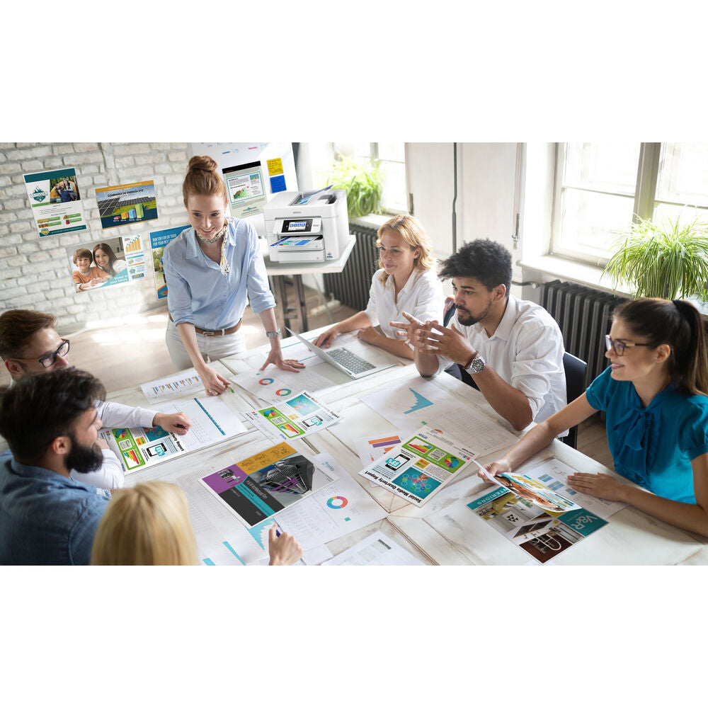 The WorkForce Pro WF-C4810 comes with a set of professional-quality DURABrite Ultra black and color instant-dry pigment inks. It prints up to 25 black or 12 color pages per minute. Other features include a 4.3" color touchscreen, wireless connectivity, and a low power consumption thanks to PrecisionCore Heat-Free Technology.