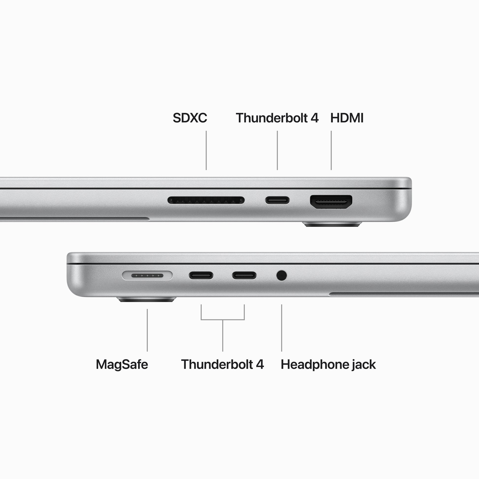 · CONNECT IT ALL—This MacBook Pro features a MagSafe charging port, three Thunderbolt 4 ports, an SDXC card slot, an HDMI port, and a headphone jack. Enjoy fast wireless connectivity with Wi-Fi 6E5 and Bluetooth 5.3. And you can connect up to four with M3 Max.