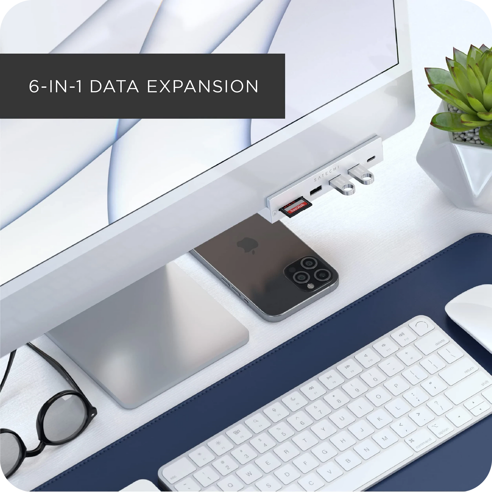 Designed to fit the 2021 iMac (24-inch), the Satechi USB-C Clamp Hub provides convenient access for all your most-loved ports and peripherals. Featuring an USB-C data port, three USB-A 3.0 data ports, micro/SD card readers, and sleek aluminum design, the USB-C Clamp Hub upgrades your iMac’s functionality while maintaining its modern aesthetic.